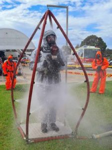 Decontamination plays a pivotal role in ensuring the safety of both the train and the firefighters who operate in the “hot zone.” Recruits learned the proper use of personal protective equipment (PPE), decontamination procedures, and effective waste disposal methods. Ruth Lee manikins were also used during decontamination training to simulate individuals requiring thorough cleaning and removal of hazardous substances. The use of manikins allowed recruits to practice decontamination procedures while minimising the risk of exposure to harmful chemicals.